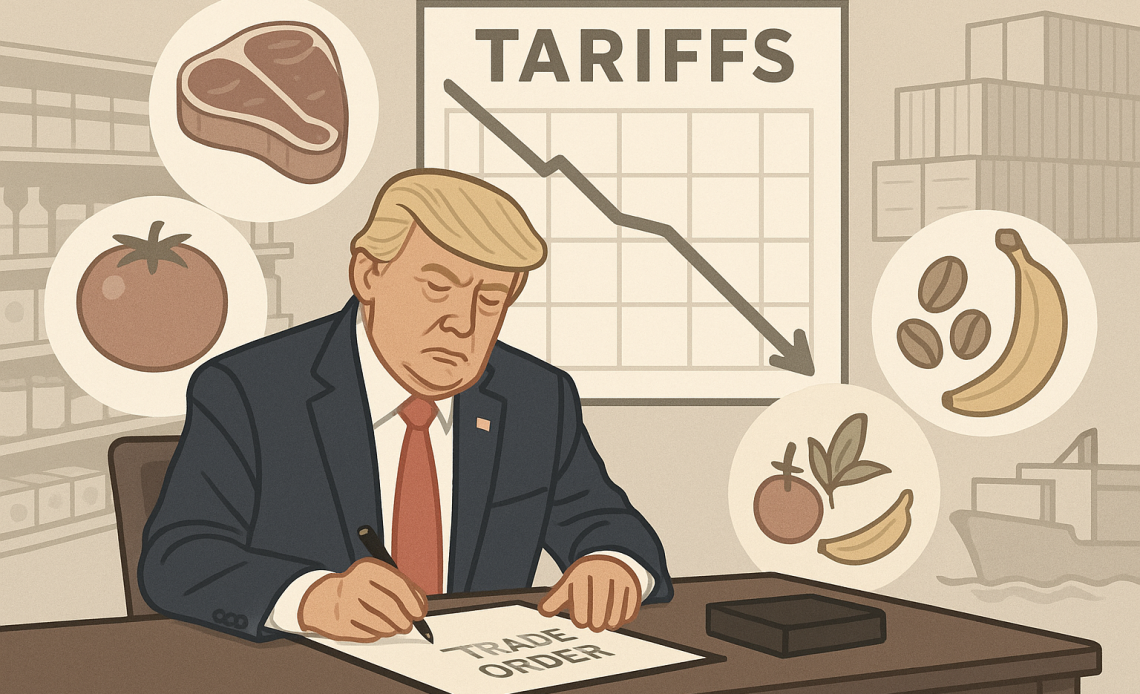 President Donald Trump is preparing an executive order that will reduce tariffs on several widely consumed food imports, including beef, tomatoes, coffee and bananas, reported Bloomberg, citing a White House official familiar with the decision.